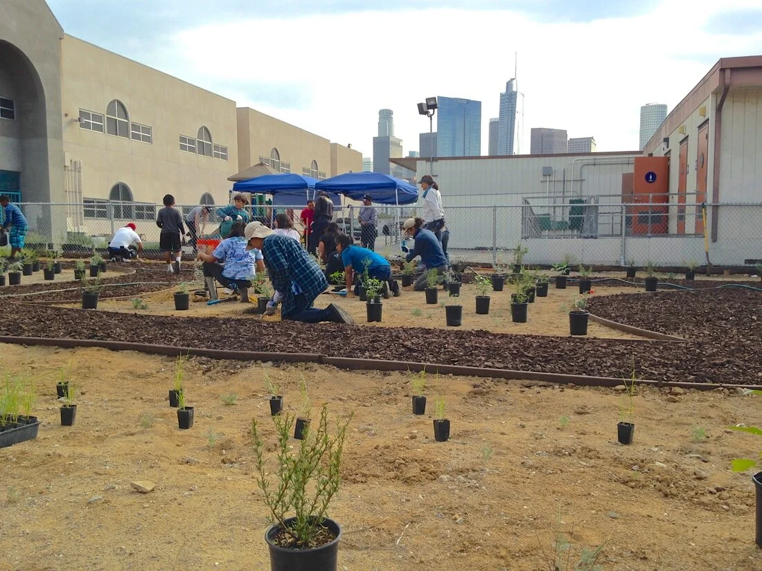 Linking to our Baldwin Hills Greenhouse program, Los Angeles Audubon Society started implementing Schoolyard Habitats within urban Los Angeles elementary schools in 2009. Each school community of parents, students, and teachers work with our high school Restoration Leaders to design and plant native habitats that serve as outdoor classrooms. Our high school Restoration Leaders develop and teach curricula based on each school’s habitat, promoting intergenerational learning and community connections across Los Angeles. This work has been supported by National Fish & Wildlife Foundation, US Fish and Wildlife Service, UCLA Class on Philanthropy, as well as private donors. We are working on our third Schoolyard Habitat. Below are photos showing the development of our second Schoolyard Habitat at Esperanza elementary School. These Schoolyard Habitats are located in some of the most highly urbanized areas of Los Angeles, and they allow students to interact with nature in very meaningful ways