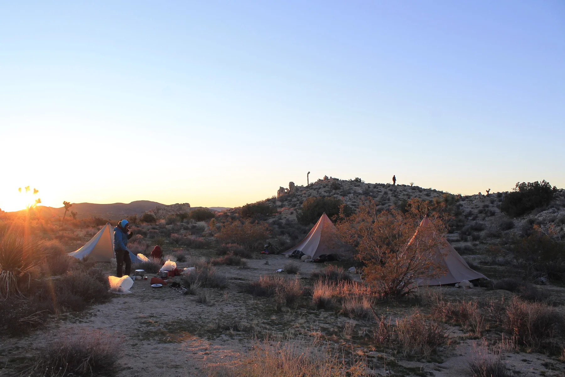Edgar — Immediately after stepping out of the truck I was greeted with the cold, strong winds of the Mojave Desert. I briefly introduced myself to the Course Directors, Kenja and Wendy, along with our instructors, Danelia (D-Low) and Lauren. We had to skip all formalities and shift into survival mode since we were obviously not prepared to deal with the sub-freezing temperature and high winds. I added layers with intense urgency. It never became so clear to me that the only thing between myself and the elements were only sheets of fabric on my body. It felt as if the desert knew we were coming and wanted to display its power before these unsuspecting city folks. The first time wearing the pack all I could think about was the weight—sixty pounds! I came to truly understand the meaning of the weight carried the more time we spent in the back-country. The packs are heavy, but we eventually learn that we are more than strong enough to carry the load. After setting up camp, we went to bed by 8 p.m. The plan was to rest in preparation for the full day ahead, but the desert had other ideas. The winds got stronger around midnight as if in celebration of the New Year. Our shelters were being blown away one by one. I had no doubt in my mind that every one of us was awake at that point. I was able to rest enough to find the winds’ midnight antics amusing. I couldn’t help but smile as I heard shrieks and laughter mixed into the storm.